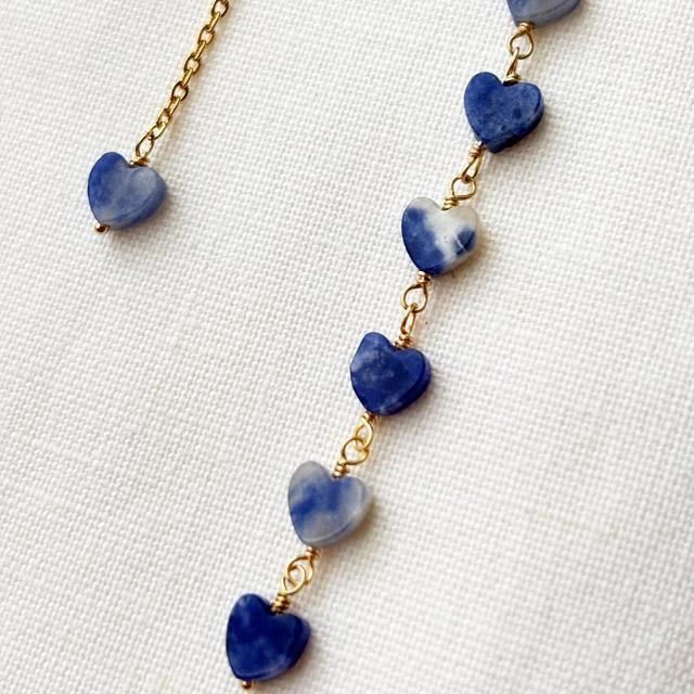 波間のような濃厚なブルーに脈模様のソーダライトにナチュラルなホワイトのマグネサイトビーズ。
