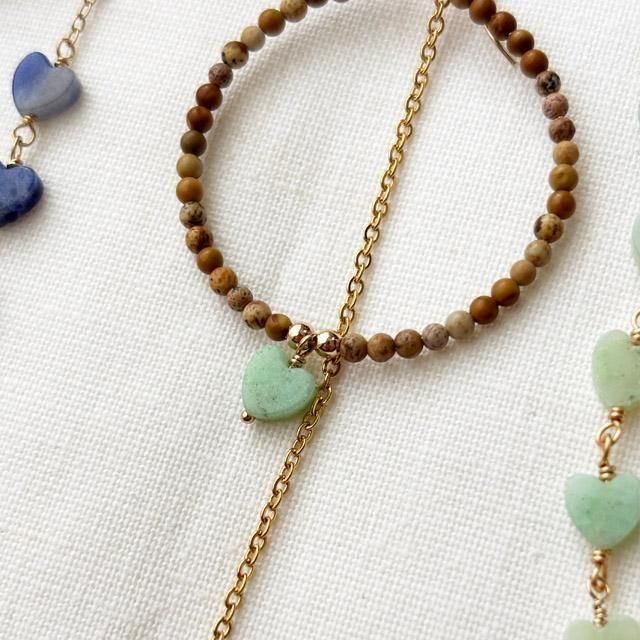 優しいアップルグリーンのクリソプレーズと木目のような温かみのあるピクチャージャスパー。