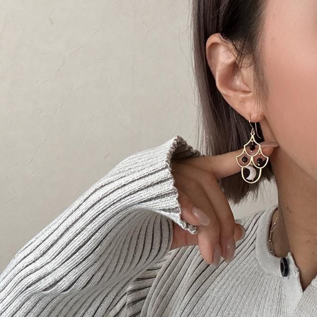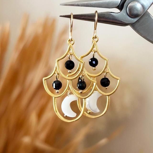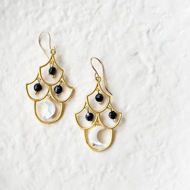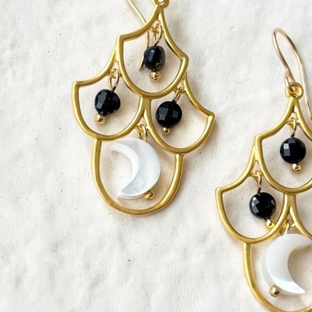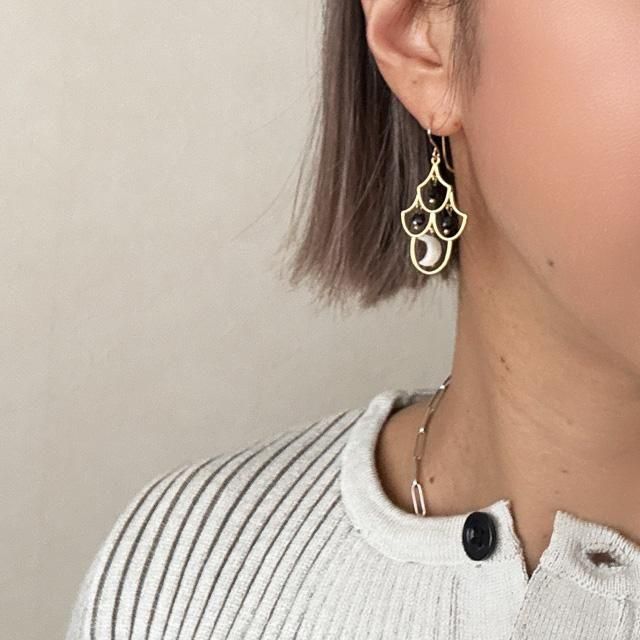 クレッセントムーンのシェイプがポイントの、シャンデリアデザインのピアスです。